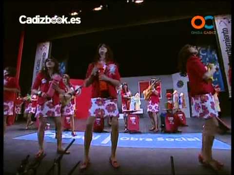 La chirigota Mari Carmen y sus muñecos participó en segundo lugar. Todo el mundo creía que el grupo iba a estar disfrazado de muñecos de la conocida ventrílocua, pero no fue así. La sorpresa fue cuando aparecieron los chirigoteros vestidos de vendedoras de tapersex, o sea de artículos para el sexo. Muy conseguida la presentación sobre todo cuando explican al público la venta que hacen de los muñecos cofrade, flamenco y un tercero, del que no se acuerdan de la letra. Simpatiquísima la letra y chirigotera la puesta en escena. Apuntaba el grupo de jóvenes. Ambos pasodobles muy bien interpretados y con buenas letras. El primero hablaba de la crisis que estaba ocasionando muchos problemas en la sociedad y que, debido a esto, no había por qué celebrar el Bicentenario de La Pepa. La letra del segundo hablaba del Carnaval y de sus autores. Muchísimos aplausos para una chirigota que gustó cantidad. La tanda de cuplés levantó también el ambiente del Falla. Ambas letras hablaban de los cacharritos que se dedican para el sexo. El estribillo, sembraos, remató perfectamente la tanda. Ovación para los cuplés y gritos de ¡chirigota!, ¡chirigota! para la agrupación. El popurrí encantó y divirtió mucho a los espectadores. Las cuartetas, todas alusivas al tipo, gustaron una enormidad. La chirigota defendió muy bien el repertorio y se metió en el tipo. Una buena chirigota pasó por el Concurso de este año, con muy poca vergüenza, pero demostrando gran calidad y poniéndoselo muy difícil al jurado. Chapó.