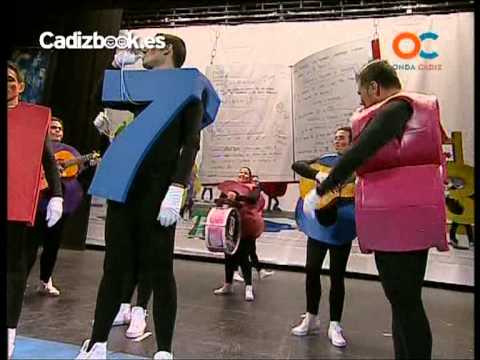Chirigota marbellí concursando en el COAC 2012. Los números, del 0 al 9 y salidos de un libro de matemáticas, componen una chirigota que interpretó el repertorio comenzando por la presentación. Aplausos para el grupo. El primer pasodoble hablaba de la afición que sienten por el Carnaval de Cádiz y por cantar en el Falla, recogida de las chirigotas ‘Los cowboy da pejeta’ y ‘Los cubatas’. Un piropo para la capital gaditana. El segundo, otra vez después de incontables veces, fue una nueva denuncia hacia tierras catalanas por las duras acusaciones de sus oriundos sobre que los gaditanos no trabajan y que los niños son bastante torpes y no se les entiende cuando hablan. Muchos aplausos para el grupo de hombres menos la bombista que era mujer. El primer cuplé hablaba de los programas que había presentado Agustín Bravo en televisión, sobre todo ‘Números rojos’ y la conocida frase: “Coge la palanca y tira”. La letra del segundo recordaba a Pepe, jugador del Real Madrid, porque asusta a los niños y el pisotón que le dio a Messi en el partido de Copa jugado en el Bernabéu. Los cuplés fueron mejores que los pasodobles. La chirigota fue a más a medida que iba pasando el repertorio. Comenzó el popurrí y el público, el poco que veía la actuación del grupo malagueño, aplaudió varias cuartetas del ingenioso popurrí. Aplausos final para una correcta participación en el Concurso.