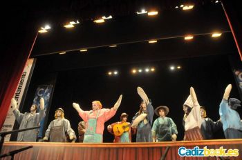 La inspiración de los poetas gaditanos cogió forma física para convertirse en chirigoteros cántabros, tierra de la alcaldesa de la ciudad, que por cierto no pudo estar en el palco municipal. El grupo, que cada año es muy bien recibido en el Carnaval de Cádiz, interpretó una bonita presentación con una puesta en escena inspirada en La Caleta, zona emblemática de la ciudad donde van todos los autores de la fiesta antes de elaborar sus letras. Muchos aplausos de los gaditanos. Santoña y Cádiz se dan cada año la mano en Carnaval. El primer pasodoble fue el de presentación, alusivo al tipo que representaban. Muchos aplausos. El segundo fue una letra que hablaba de la diferencia abismal que hay entre un futbolista de nombre y un trabajador de cualquiera profesión. El primer cuplé hablaba de la voz que tiene la alcaldesa de Cádiz y el segundo hablaba de las enfermedades del Rey y del escándalo de su yerno. Los ‘chicucos’ santanderinos cantaron un estribillo que repasa a varios autores de Carnaval. Muchos aplausos para los chirigoteros. Llamaba la atención el acento con el que los cántabros interpretan las letras. El popurrí fue otro repaso, esta vez a los autores y a sus agrupaciones que han tenido problemas antes del Concurso y a los que no. Bien cantado y mejor defendido. Ovación de despedida para los norteños que devolvieron los aplausos al público.