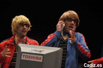 La chirigota ‘Los del espacio’, representan a unos chicos que les gusta mucho estar delante del ordenador, aunque ellos querían un Mac, pero se han conformado con darle un “bocao a un pero”. Buenos golpes durante la presentación antes de finalizarla con “sentimiento chirigotero”. Los pasodobles, el primero, de presentación, y relacionado con el tipo, “si el rendimiento de mis coplas no es óptimo, cierro mi sesión y te espero en la calle”. Bonita la música del pasodoble, de Luis Rivero. El segundo, muy bien escrito, sobre la reforma de la Ley del Aborto propuesta por Ruiz Gallardón. Una madre, con 70 años, que tiene que cuidar a un hijo de 40, pero que sigue siendo un niño. Y el día que ella falte, le dice al ministro que se lo lleve a su casa. Los cuplés, el primero, a Pipi Estrada le robaron el móvil, y a Germán García también, y ahora tiene Cádiz los números de los comparsistas, y no paran de llamarlos, menos a Javi Bohórquez. El segundo, muy bien también, sobre la grabación de la presentación de Los Carapapas y el pasodoble de Juan Carlos Aragón. A ellos les ha pasado lo mismo, e interactúan con el público. El popurrí, también muy simpático. Estupenda la cuarteta del whatsapp, y la que utilizan estribillos de chirigotas para explicar un vídeo de una chica de internet. Quizás puedan repetir el éxito cuando Leal escribió la chirigota ‘Autoescuela Echa el freno Magdaleno’.