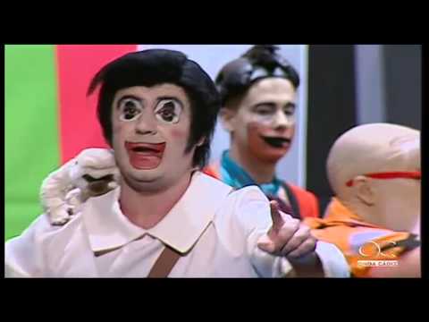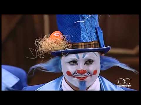 El circo de los payasos es el nombre de esta comparsa de Cádiz para participar en el concurso de agrupaciones del Teatro Falla. Sobre las tablas unos payasos que representan a los partidos políticos. Un circo de los payasos o Congreso de los Diputados, como se les quiera llamar. El primer pasodoble sobre la realidad de Andalucía en la que “estamos como estamos porque así lo hemos votado”. El segundo a un padre que reniega de su hijo cuando este sale del armario. Sigue manteniendo la esperanza de recuperarlo algún día. Letras que son aplaudidas por el público. El primer cuplé de como hicieron los tipos para su comparsa. El segundo sobre los de Podemos que no quieren celebrar la Navidad, tan sólo a los tres camellos. Estribillo sobre la actuación de los payasos en el Congreso. Aplausos. Popurrí que comienza con los sones musicales propios de los payasos del circo. Abrimos las puertas, comienzan las campañas electorales. Ríete de lo que ofrecen los políticos y después no cumplen. Desde el gallinero llueven billetes de 200 euros en un momento de su actuación. Una actuación con mucho ritmo la de estos payasos que es despedida con los aplausos del público.