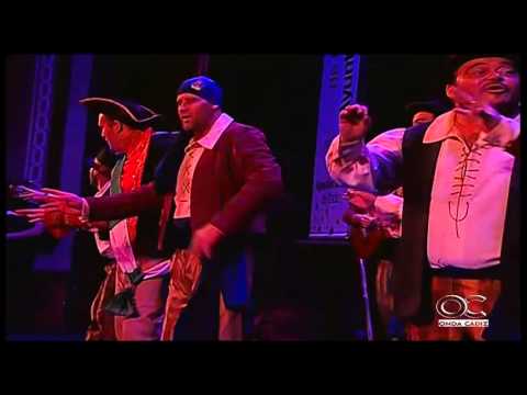 Desde el Puerto de Santa María llega la comparsa que lleva por título Santísima Trinidad. Se presenta sobre las tablas del Gran Teatro Falla representando a unos soldados de Cádiz a bordo de una embarcación cuyo nombre es el de la Santísima Trinidad. El primer pasodoble a los refugiados que huyen de su tierra, del hambre y la miseria. El segundo sobre algunas mujeres que denuncian a hombres de malos tratos con falsos testimonios para destruir sus vidas. Aplausos del público. El primer cuplé de la moda de todo el mundo de apuntarse al gimnasio. El segundo sobre el programa televisivo de Adán y Eva. Estribillo donde por ti volverían a la batalla, Cádiz tierra de la libertad. Terminan su actuación con el popurrí donde esta tripulación cuenta su historia en la batalla que ellos participaron en Trafalgar. El mar de Cádiz fue su campo de batalla y os es tu familia y tu hogar. La mar que guarda el secreto de su voz. Despedida con aplausos.