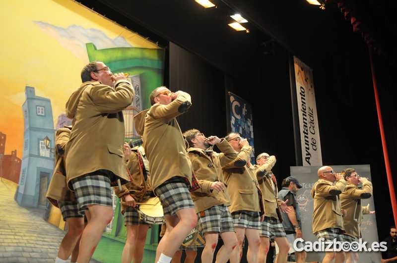 Los niños "al que todos le dan cates" se vuelven a enfrentar al grupo de chulos del barrio. La merienda la pierden, se intentan enfrentar a ellos pero al final salen huyendo, por tercera vez. Mucho arte de estos niños con trenca. El primer pasodoble trata de una manera muy delicada el acoso escolar que se sufren muchos menores en los centros educativos. Ellos empiezan con ironía hablando sobre ellos, pero se ponen serios para hablar de los chicos que se divierten grabando palizas para colgarlas en internet. El segundo, una preciosas letras sobre el maltrato a las mujeres. Habla una de ellas que firmó su sentencia de muerte el día que se casó, y sus lagrimas no tiene consuelo. Y cuando llega al cielo le dice a San Pedro que ha conocido al demonio y ha compartido cama con él. El primer cuplé sobre su prima, que se le dan muy mal los estudios pero tiene muy buen cuerpo. Ella se va a Estados Unidos a estudiar y vuelve con un máster "muy especial". El segundo cuplé sobre el Concurso, que cuando ronca hasta lleva el compás, y su mujer, que esta harta, le dice que le punto el punto G, y se equivocó y buscó Punto Radio. El popurrí, aunque sin hilo conductor, son cuartetas sobre el tipo que representan. Chirigotero el repertorio y el compás de esta agrupación, finalizando con una cuarteta defendiendo el Carnaval.