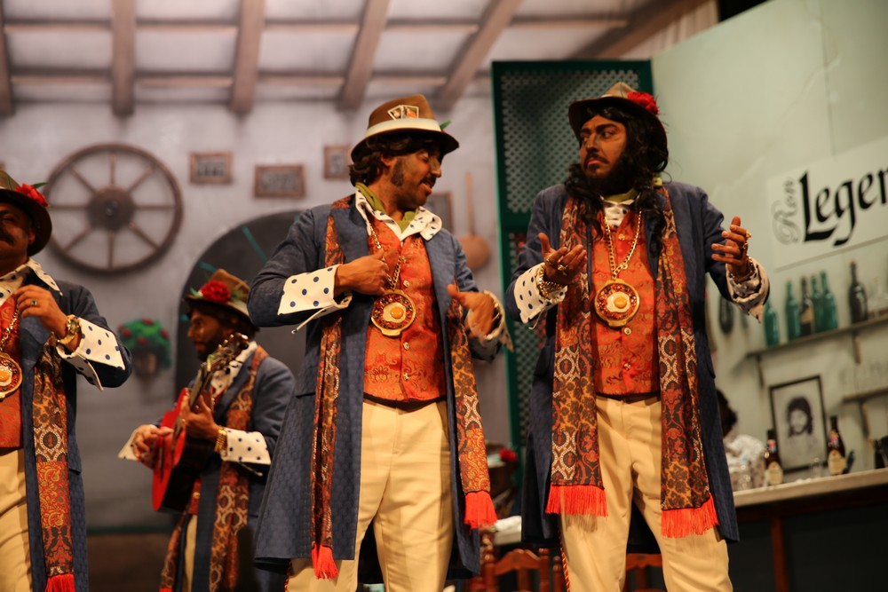 Turno en la fase de semifinales del concurso de agrupaciones del Falla para la chirigota de Cádiz, ¡Qué caló! Tercera actuación para estos gitanos chirigoteros que defenderán su repertorio en busca de una plaza en la Gran Final del próximo viernes. El primero de los pasodobles dedicado al autor de comparsas, Tino Tovar, por el anuncio de su retirada temporal de los carnavales. Gritan a los cuatro vientos que sea Tino Tovar el próximo pregonero del carnaval de Cádiz. El segundo sobre la Real Academia de la Lengua, a la que ellos como gitanos le vienen a ajustar cuentas. Dicen que no comparte la definición que esta señala para la palabra gitano. El primer cuplé sobre el mandatario de Corea del Norte. Aquí tenemos a Terelu Campos que tiene un botón en el pantalón que como le explote, mata a la madre. El segundo a la limpieza de colón que dicen que lo mejor es limpiarlo con café. Con la cafeína es que llevan varios días que no pueden cerrar el ojo. Terminan su actuación con la interpretación del popurrí y quedan a la espera de la decisión del jurado para ver si estarán en la Gran Final del próximo viernes.