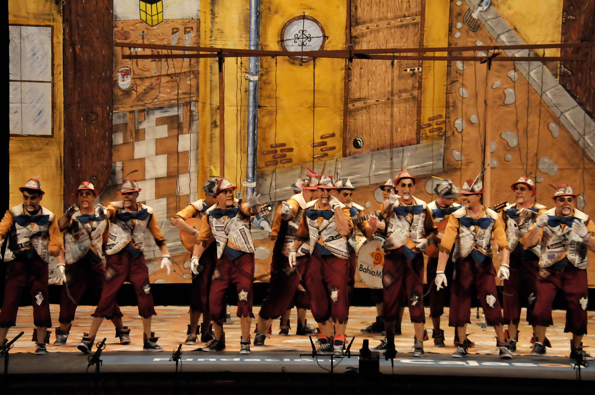 La comparsa ‘De corazón verdadero’, de El Puerto de Santa María, se presenta como Pinochos que están atados a las cuerdas hasta que se desatan por la rabia de las injusticias. No quieren mentir y dicen que no vienen por un premio. Los pasodobles, en el primero hablan de una familia que el 6 de enero no pudieron entregar regalos a su hijo. Él le dice a su padre que no llore, que no se preocupe porque lo escucha hablar de la falta de dinero que hay en su casa. Una casa donde, además, falta la madre, que los cuida desde el cielo. En el segundo una crítica a la Iglesia y a los sacerdotes que han abusado de menores. Ellos hablan en primera persona, interpretando a uno de esos niños. Ellos le pide a Dios que les ayude, porque ellos creen en Él. Por eso quiere que baje a la tierra y que haga que los que han abusado de él paguen por lo que han hecho. Los cuplés, el primero a la mujer y comparan su relación con distintos grupos de música, como Amistades Peligrosas o Pimpinela. El segundo sobre el fallecimiento de la Duquesa de Alba y habla de ella Marujita Díaz que enseña una foto que tenía con ella cuando era pequeña, y en la que tamién salía el Pequeño Nicolás. En el popurrí, los Pinochos siguen criticando y denunciando lo que ellos entiende que son injusticias. Los caso de corrupción, el privilegio de la Infanta Cristina en el Caso Noos… ellos sí que se sienten más humanos cuando se enamoran de una mujer. Tienen algunos problemas de interpretación, sobre todo en esta parte del repertorio.