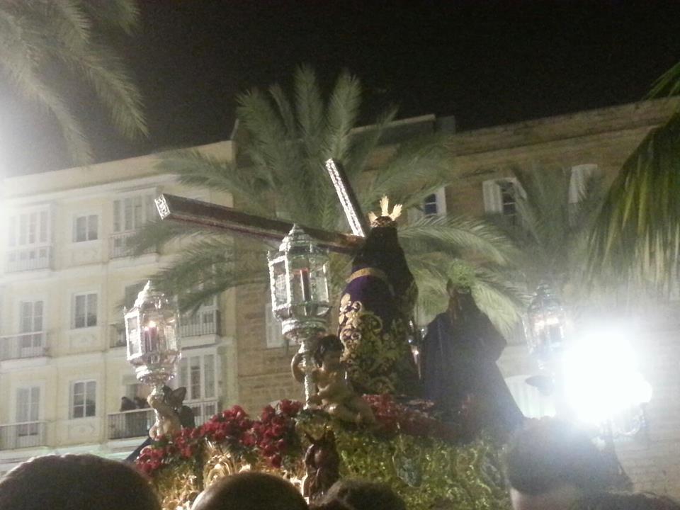 El Nazareno de Santa María de nuevo levantó las pasiones y devociones de cientos de gaditanos. Por la mañana se celebró el acto de entrega del bastón de mando de la ciudad a cargo de la alcaldesa, Teófila Martínez, acompañado por el pregonero de la Semana Santa 2013, Juan Manzorro, y el obispo de Cádiz, Rafael Zornoza. A las 20.30 horas las puertas de Santa María se abrieron para que el Nazareno se encontrase con su gente, al igual que la Virgen de los Dolores, exornado su paso con rosas blancas. Un paso que hizo sin problemas, con tranquilidad, hasta cuando se adentró en el barrio, que también se vio sorprendido por el aguacero y la junta de gobierno se vio obligada a adelantar la recogida.